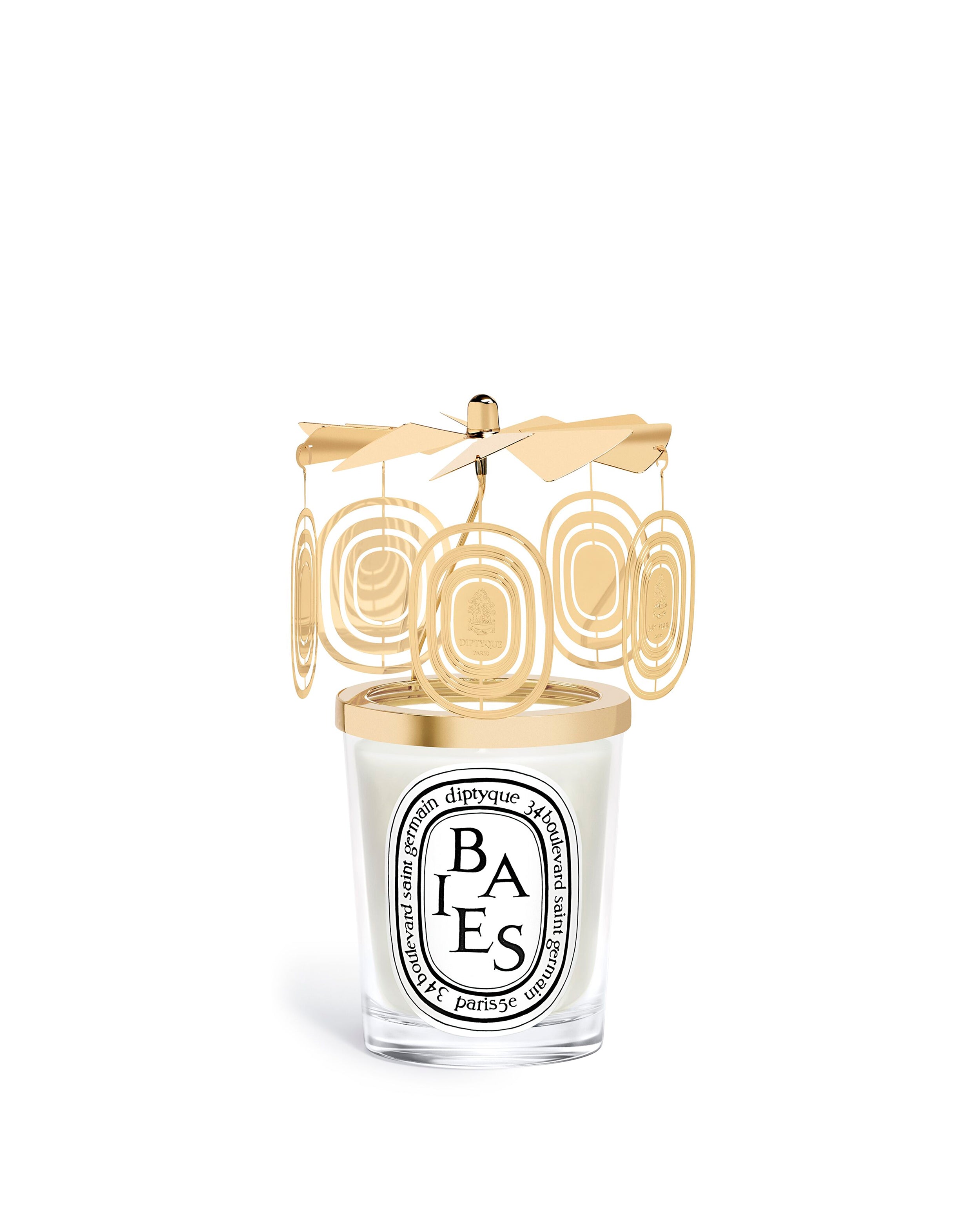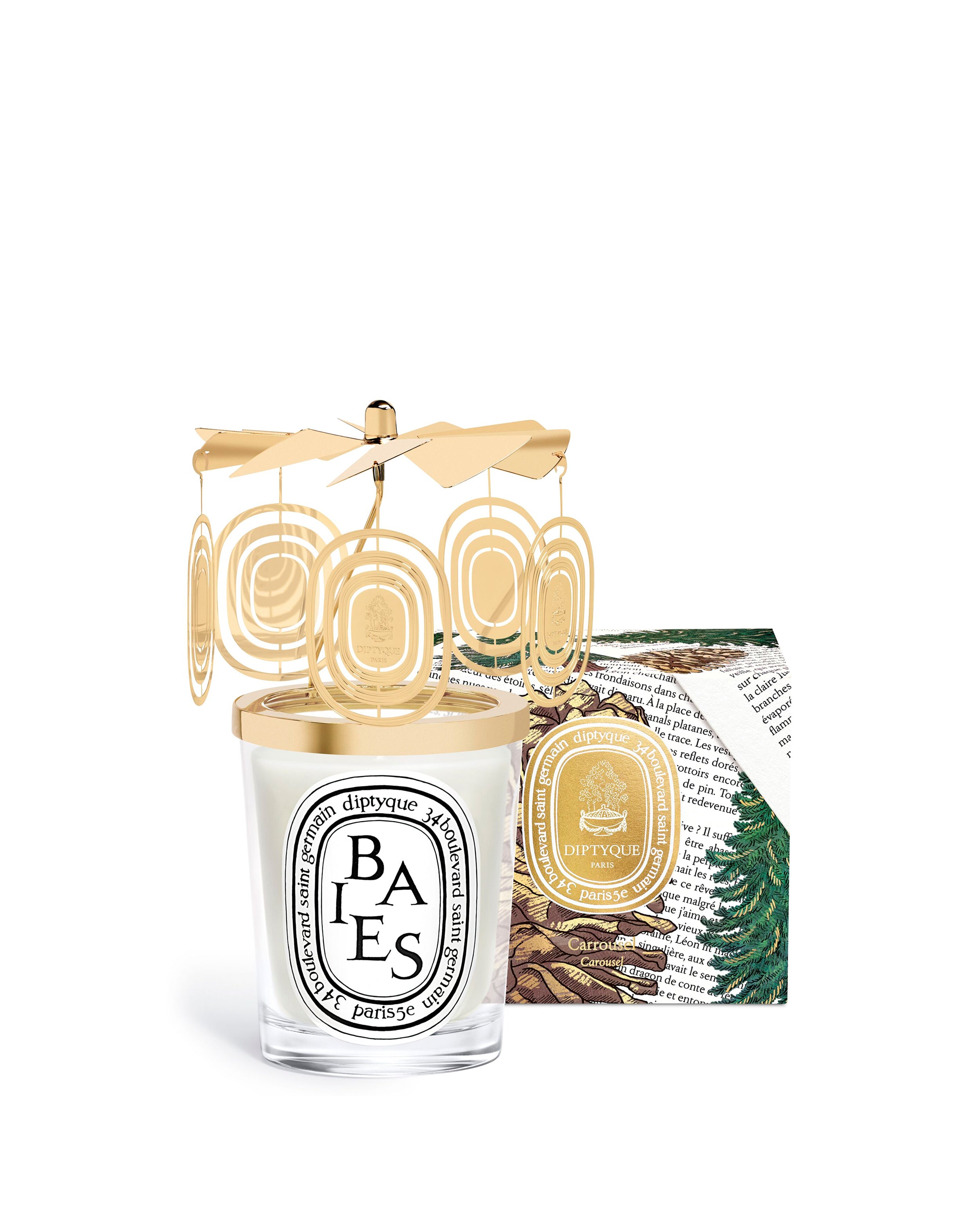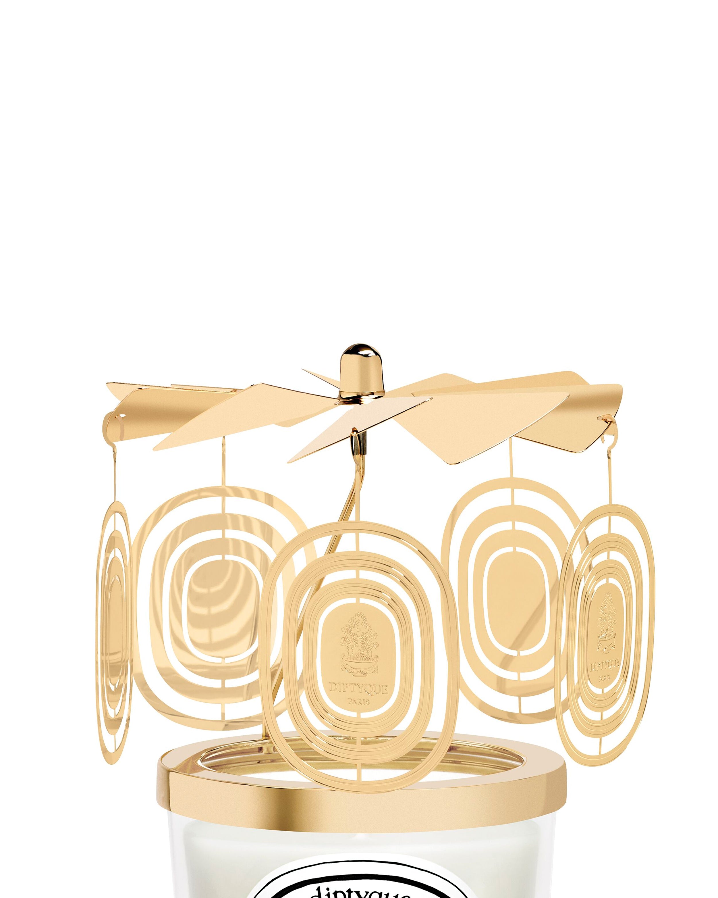 Designed to sit atop a candle, the gilded Diptyque Carousel twirls when the flame is lit, casting captivating patterns of light and shadow.This limited-edition version features dangling charms that are activated by the candle’s heat. It calls to mind the Old World charm of vintage booksellers’ lamps and brings a touch of luminosity throughout winter.